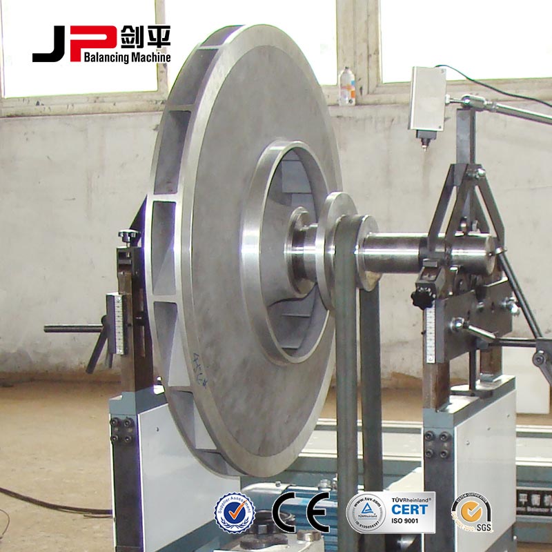 2. Balance estático. - El impulsor está montado en un eje o árbol de balanceo, lleno con el medio de equilibrado y los extremos del eje soportados sobre maneras paralelas o bordes de cuchilla. El lado pesado del impulsor girará el impulsor sobre sus soportes hasta que llegue a descansar con el desequilibrio hacia abajo. Mediante un método de prueba y error, se retira suficiente metal del lado pesado del impulsor para permitir que el impulsor permanezca en reposo en cualquier posición.